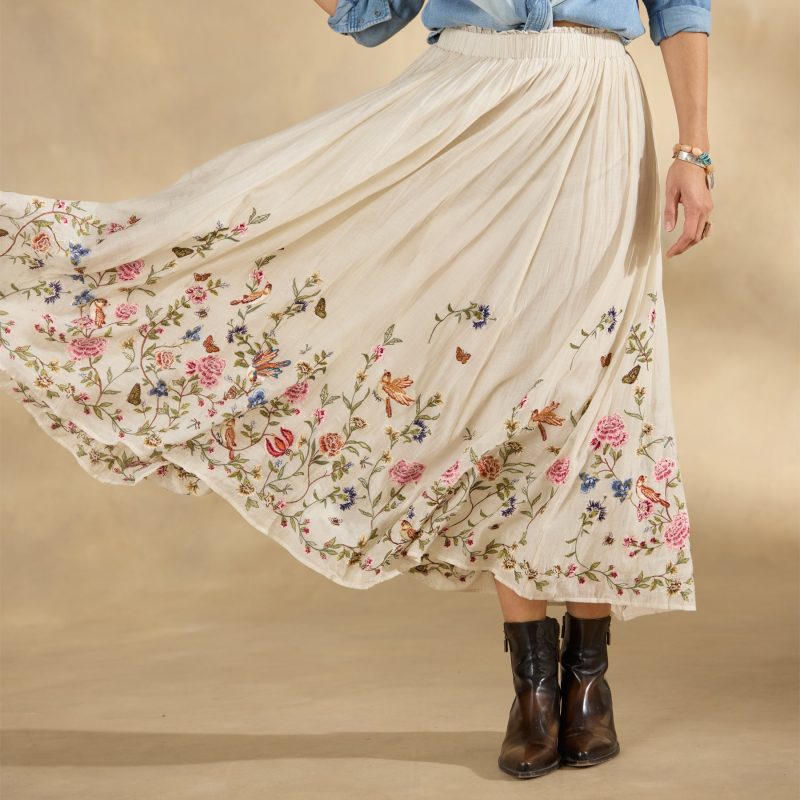 Sporty and feminine. our cotton gauze. eyelet pants are loose and flowing. with wide-leg silhouette. scalloped hem. side seam pockets and back patch pockets. Fully lined. with button closure zip fly and tie at waistline. Machine wash. Imported. Exclusive. Sizes 0?C14. 27.5 inseam