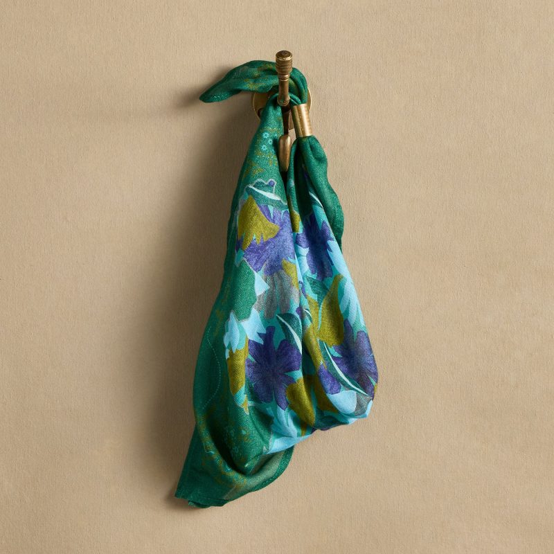 This handmade scarf in an oversized floral pattern can be worn with or without the included bolero charm. Viscose gauze. Machine wash. Imported. Exclusive. Approx. 20 sq.