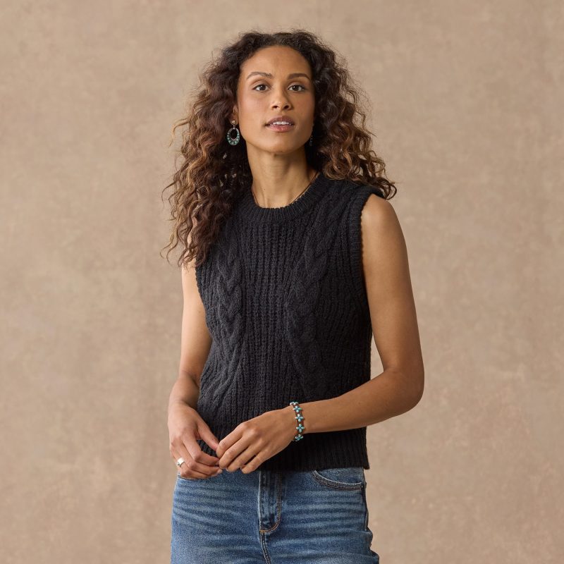 The loftiest combination of chunky rib knit and top applied cable stitch makes our sweater vest’s contouring so flattering. With rib trim. So versatile. wear on its own or with a layer underneath. Acrylic/nylon/polyester. Hand wash. Imported. Exclusive. Sizes XXS (00). XS (0–2). S (4–6). M (8–10). L (12–14). XL (16–18). Approx. 18l.