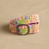 This two-tone wool belt features rich floral embroidery for a simply elegant look. Five sets of holes so the belt can be worn at the hips or the waist. Handcrafted in Peru. Metal buckle. Sizes S (32). M (34). L (36). Approx. 1.78 wide.