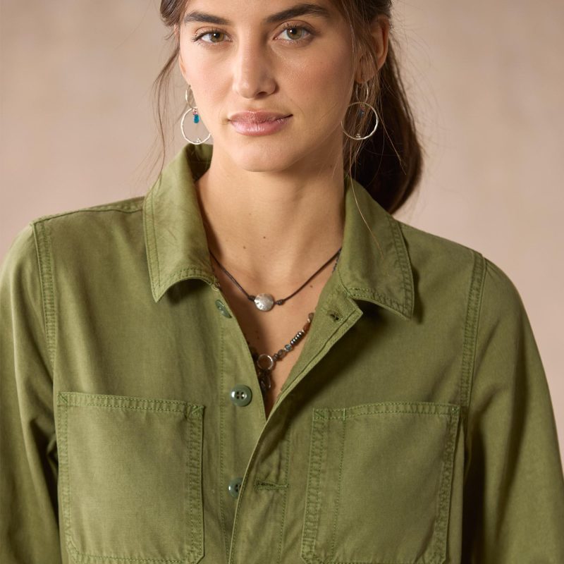 Super soft and lightweight. our utility jumpsuit drapes beautifully. with six pockets. center front buttons and zip fly and adjustable side tabs at waist for the perfect fit. Cotton/lyocell. Machine wash. Imported. Exclusive. Sizes XXS (00). XS (0?C2). S (4?C6). M (8?C10). L (12?C14). XL (16?C18). 25 inseam.