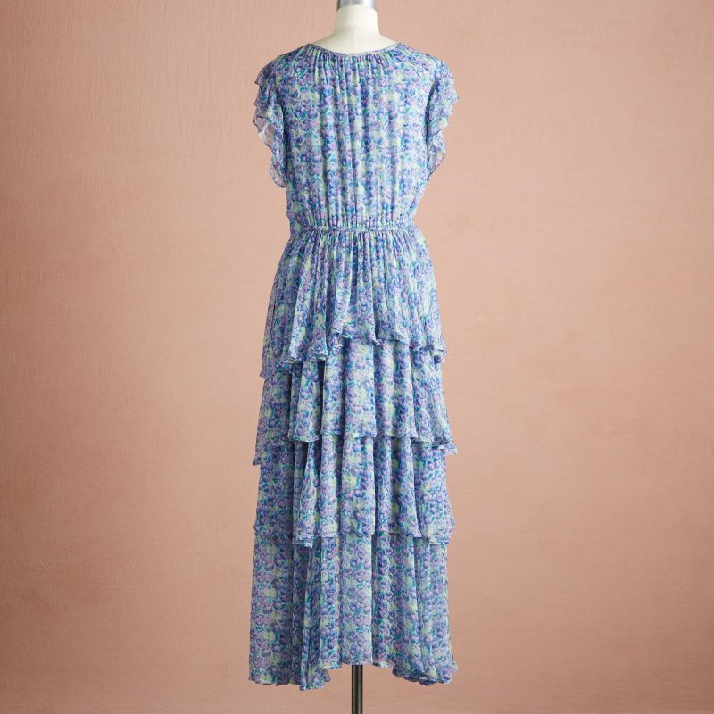 Vintage florals are gracefully printed on our easy. tiered dress. embroidered with touches of feminine detail. Cupro. Hand wash. Imported. Exclusive. Sizes XS (0-2). S (4-6). M (8-10). L (12-14). XL (16-18). XXL (20-22). Approx. 57.5l.