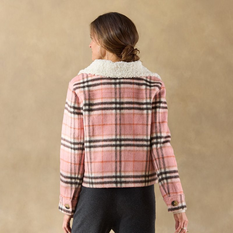 So cozy. our perfect plaid jacket has both functional and stylish utility pockets with flaps at the top and a side entry. warm Sherpa collar and a beautiful printed floral lining. Polyester/wool. Dry clean. Imported. Exclusive. Sizes XXS (00). XS (0?C2). S (4?C6). M (8?C10). L (12?C14). XL (16?C18). Approx. 21l.