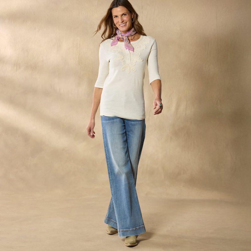 Jersey soutache detailing at the placket adds a touch of texture to this classic fit tonal henley. Elbow length sleeves. Cotton. Machine wash. Imported. Exclusive. Sizes XS (0?C2). S (4?C6). M (8?C10). L (12?C14). XL (16?C18). XXL (20?C22). Approx. 23l.