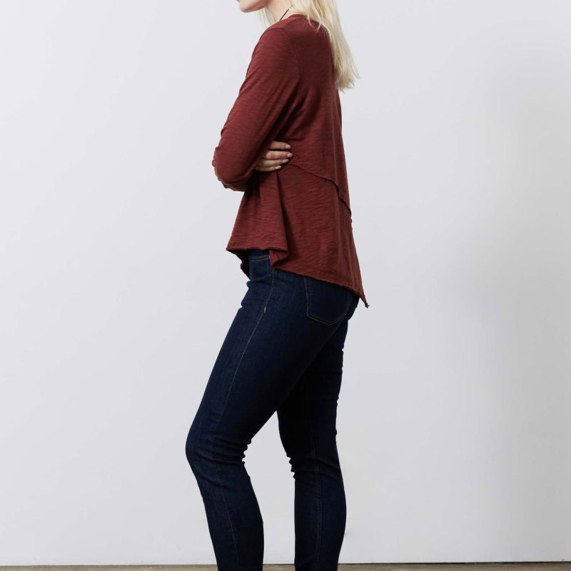 Asymmetric silhouettes are trending for the new season. Make this casual yet stand out piece your new basic with flare. closet staple.