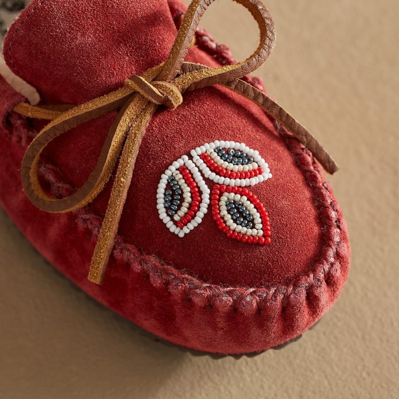 These handcrafted moccasins provide cozy comfort and feature a beaded design and sherpa lining. Suede. Imported. Whole sizes 6?C11.