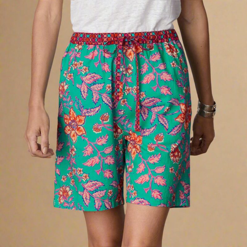 Vibrant prints add joy to our relaxed. high rise shorts with contrast print under the drawstring. Cotton. Machine wash. Imported. Exclusive. Sizes XXS (00). XS (0-2). S (4-6). M (8-10). L (12-14). XL (16-18). 6.25 inseam.
