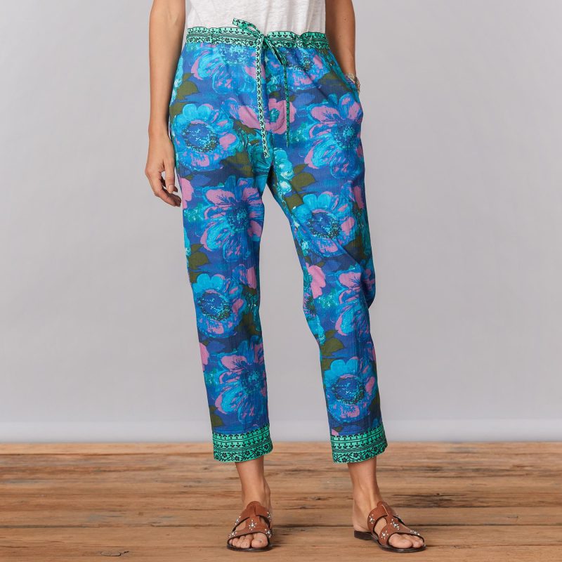 Perfectly comfortable for lounging. yet pretty enough to wear out on the town. Relaxed fit. drawstring pants in a vibrant print. Cotton. Machine wash. Imported. Exclusive. Sizes XS (0 to 2). S (4 to 6). M (8 to 10). L (12 to 14). XL (16 to 18). XXL (20 to 22). 24 inseam.