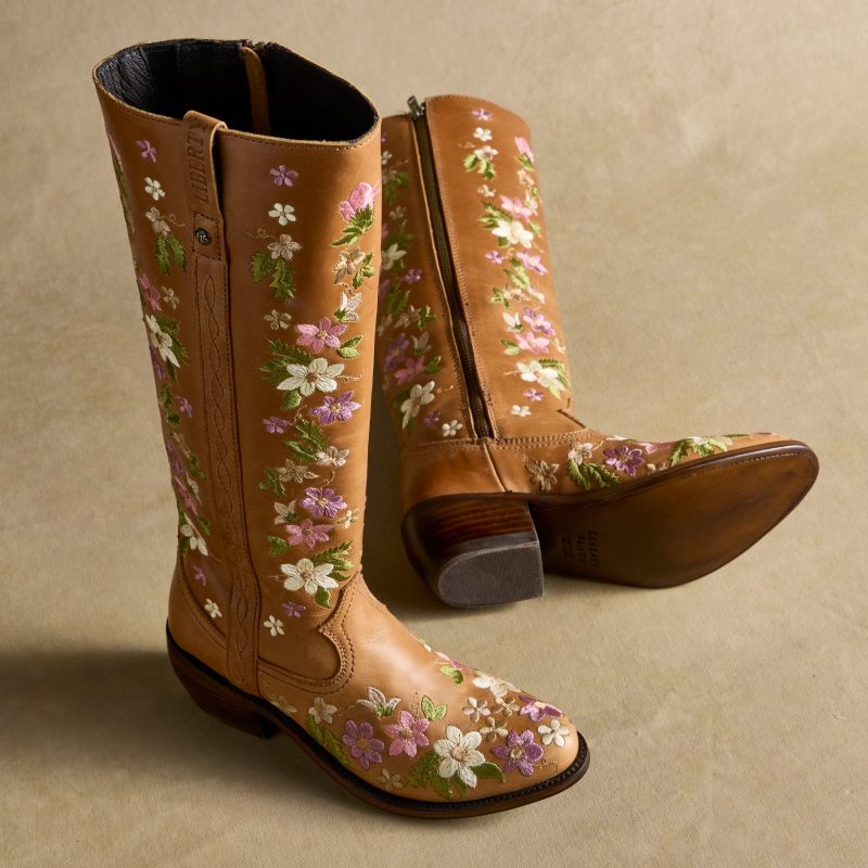 Nature lovers will rejoice over these handmade lead- and metal-free leather boots. adorned deliciously with intricately embroidered flowers that will cheer your day. Side zip. Imported. Exclusive. Whole and half sizes 6?C10. 11. 1.73 heel.