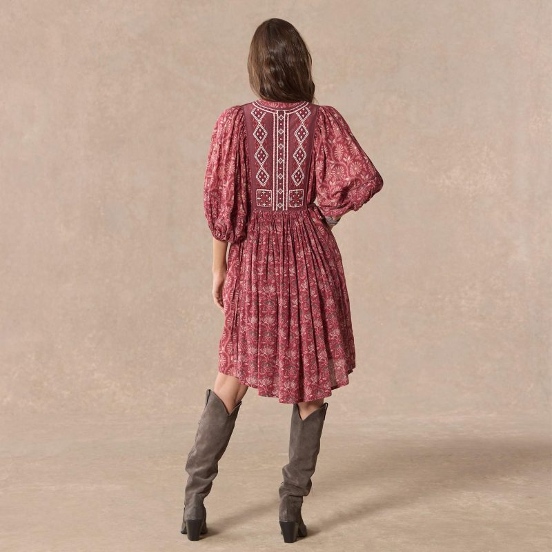 Our easy pop over dress is mixed printed and finished with stunning embroidery at the placket. a flattering V-notch neckline with three looped buttons and puff sleeves with elastic cuffs. Side ties to gather at the center front and back for the perfect fit. Cotton/viscose. Machine wash. Imported. Exclusive. Sizes XXS (00). XS (0?C2). S (4?C6). M (8?C10). L (12?C14). XL (16?C18). Approx. 38.5l.
