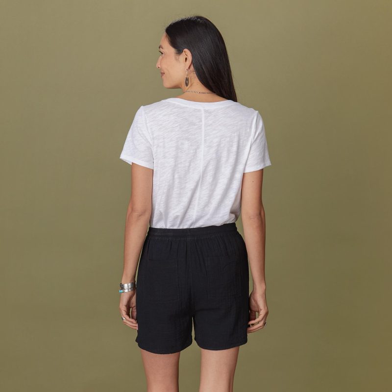 Our easy. drawcord and elastic waist shorts are so relaxed with side seam slits and surplus pockets. Cotton. Machine wash. Imported. Exclusive. Sizes XS (0-2). S (4-6). M (8-10). L (12-14). XL (16-18). XXL (20-22). Approx. 4 inseam. For a closer fit. please size down one size.
