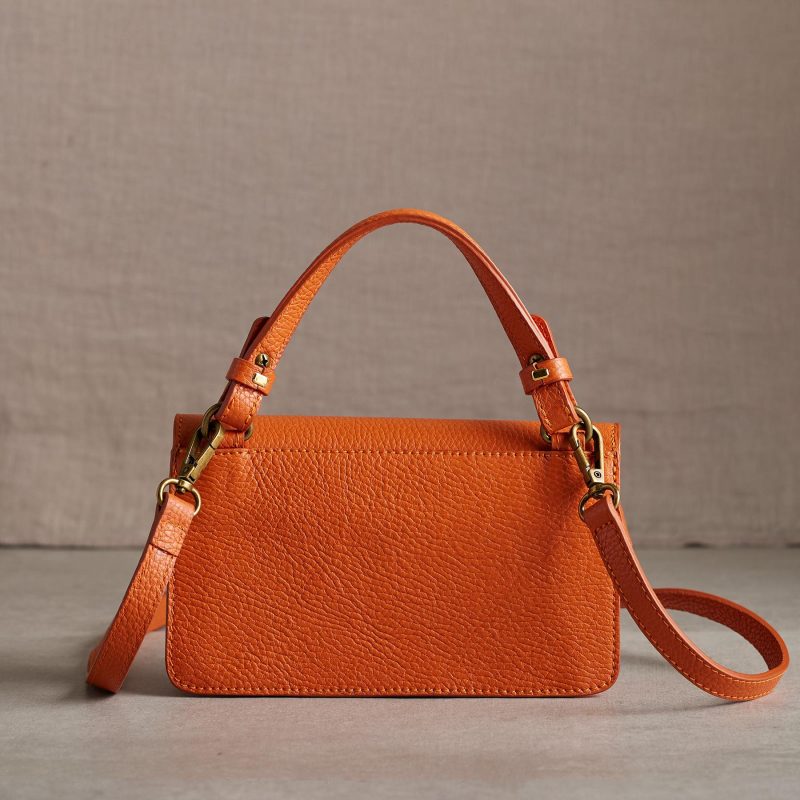 This compact sized bag scores big stylish points with sleek lines in luxe. pebbled leather and attractive turn-lock closure. with room for the essentials inside. Removable handle. adjustable/removable crossbody strap. Italy. Approx. 7.87w x 1.97d x 4.72h.