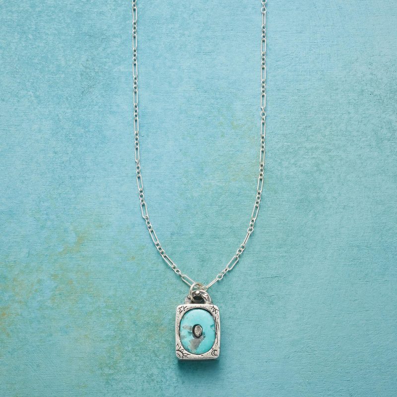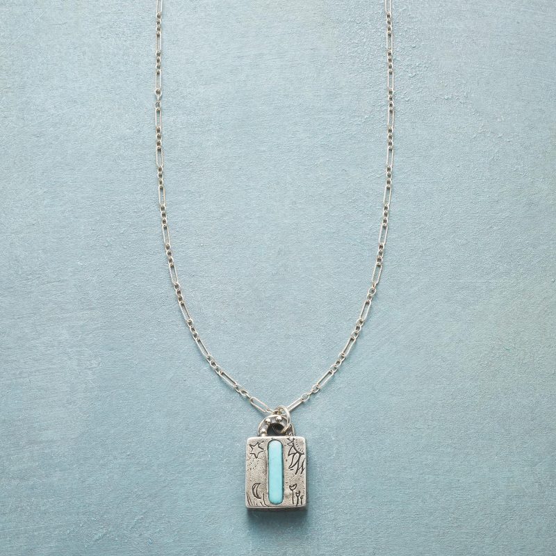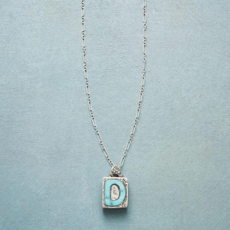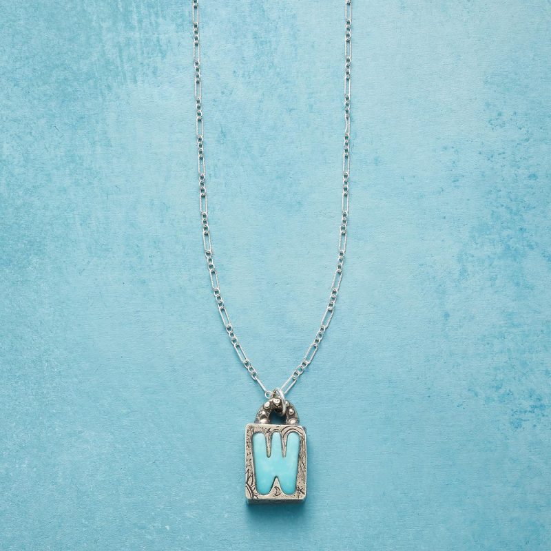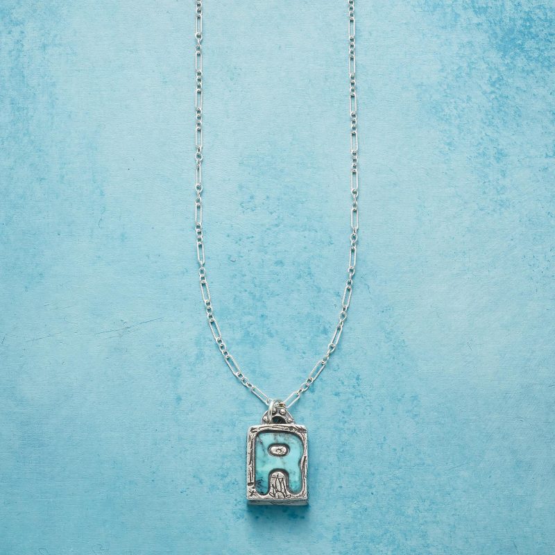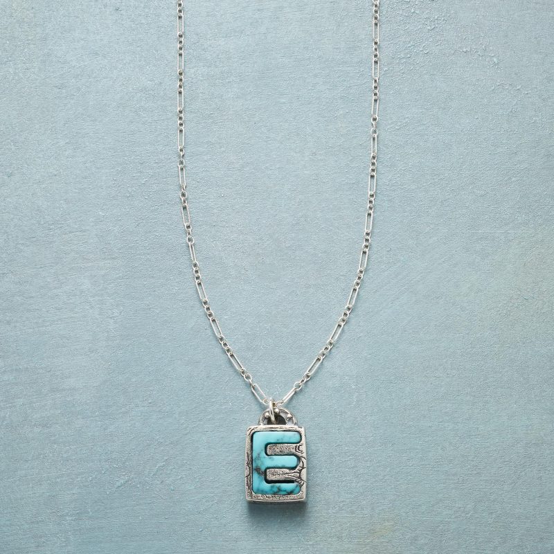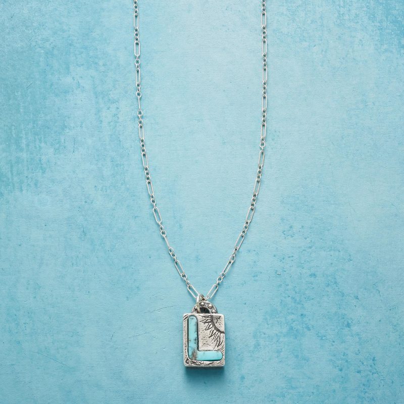 Jes MaHarry adds her personal touch. setting a hand-cut turquoise initial into a rustic bezel etched with joy on the side. love life on reverse. Sterling silver chain; Spring ring clasp. Exclusive. Handmade in the USA. Specify letter. 18l; pendant approx. 7/8l.