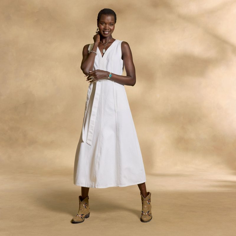 Thanks to valued customer feedback. our enduring bestseller has been reimagined with a slightly more relaxed waist. Ultra-flattering seams and a removeable tie belt create a perfectly tailored look; with patch pockets and center-back zipper. Cotton. Machine wash. Imported. Exclusive. Sizes 2?C16. Approx. 50l.