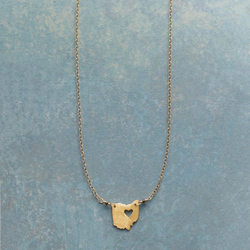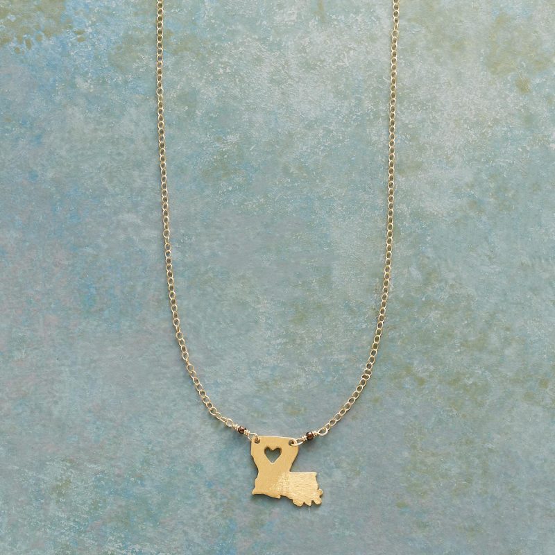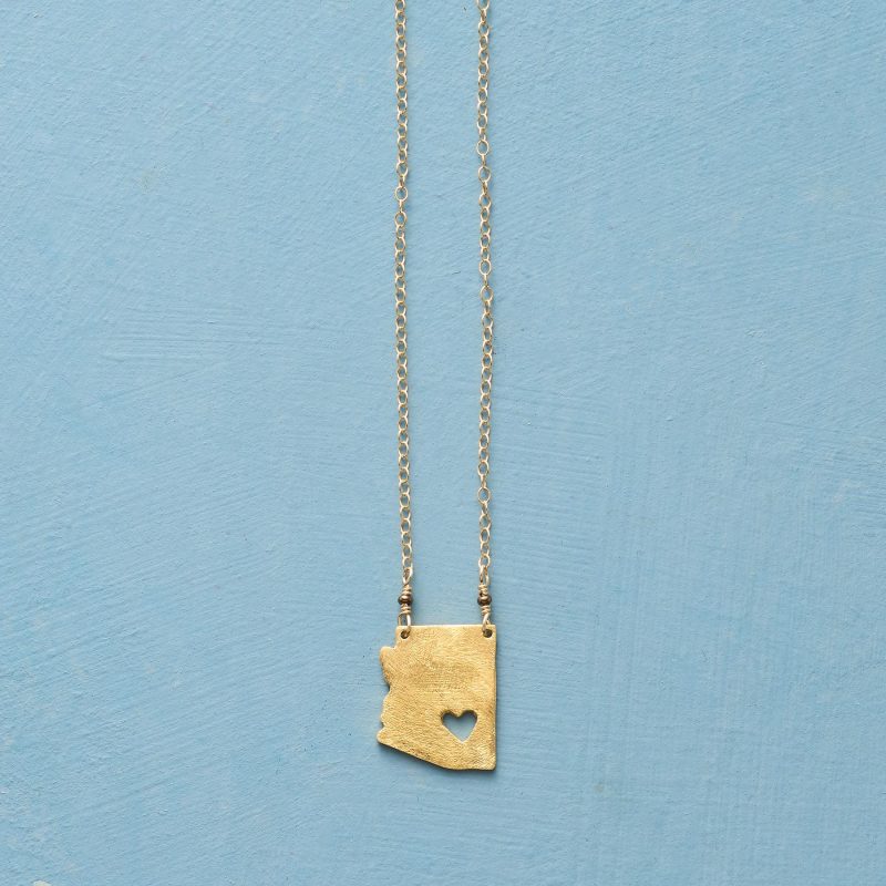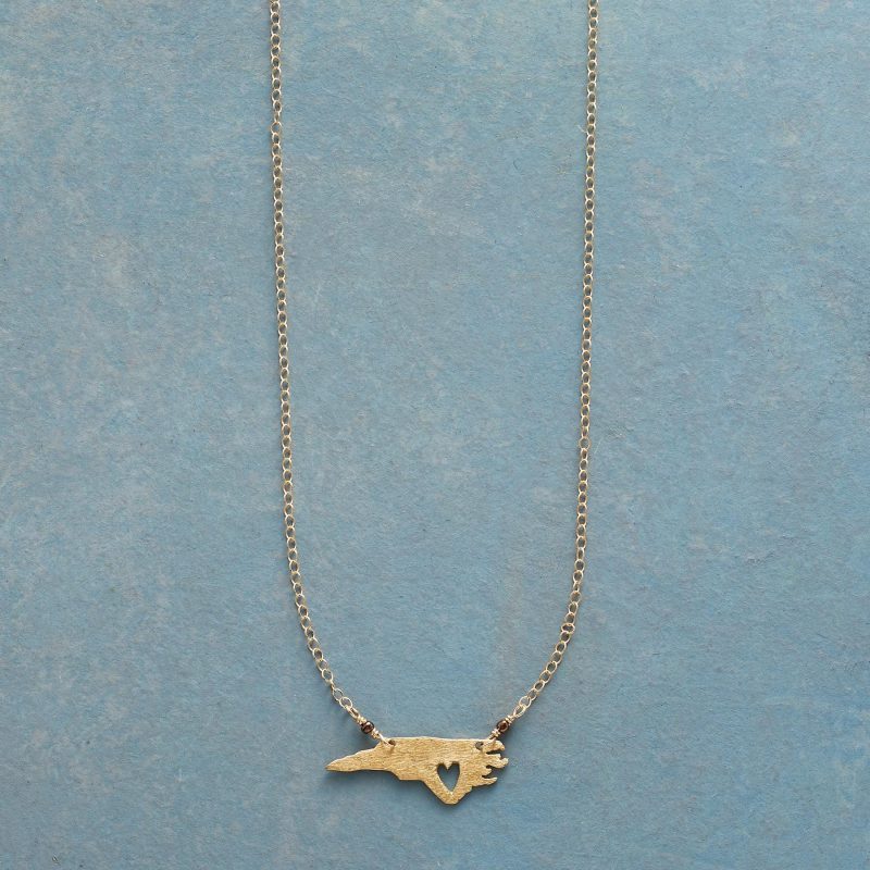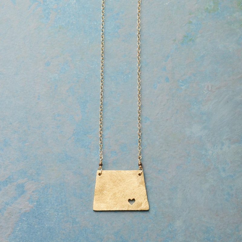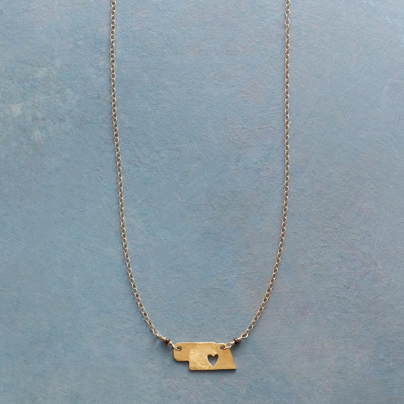 Celebrate your favorite state with our 18kt gold-plated charm strung on a 14kt gold-filled chain. A cut-out heart shows your love. Lobster clasp. Handcrafted. Exclusive. 17-18l