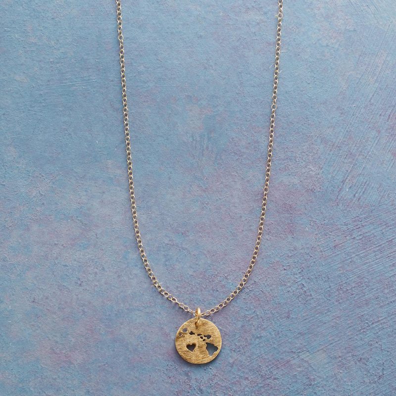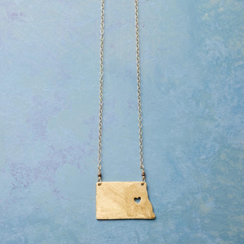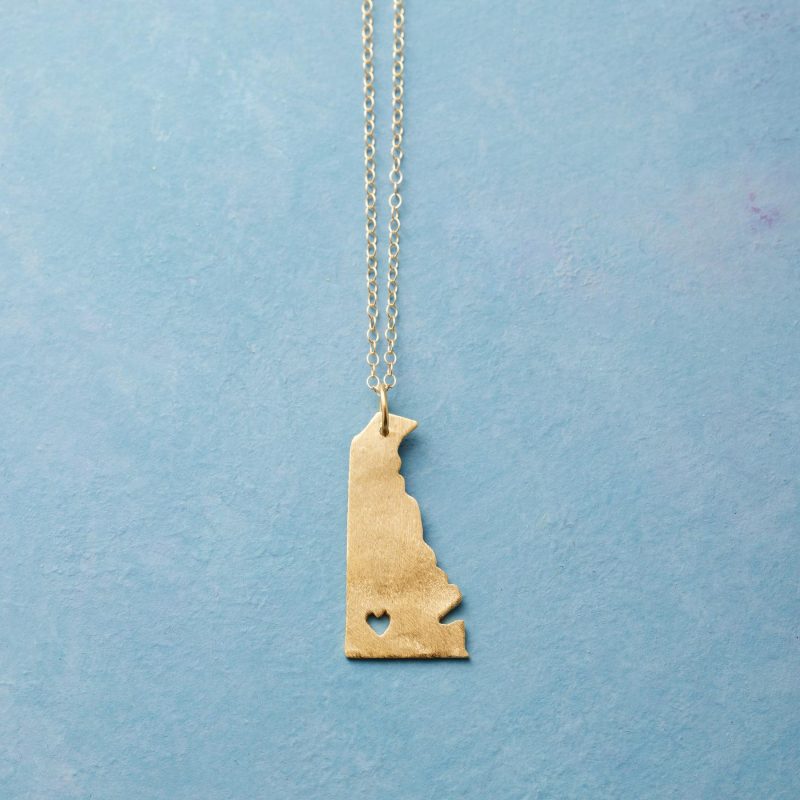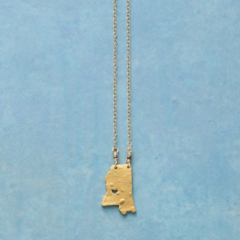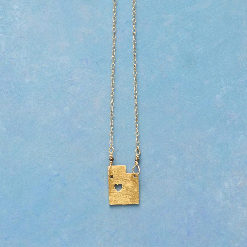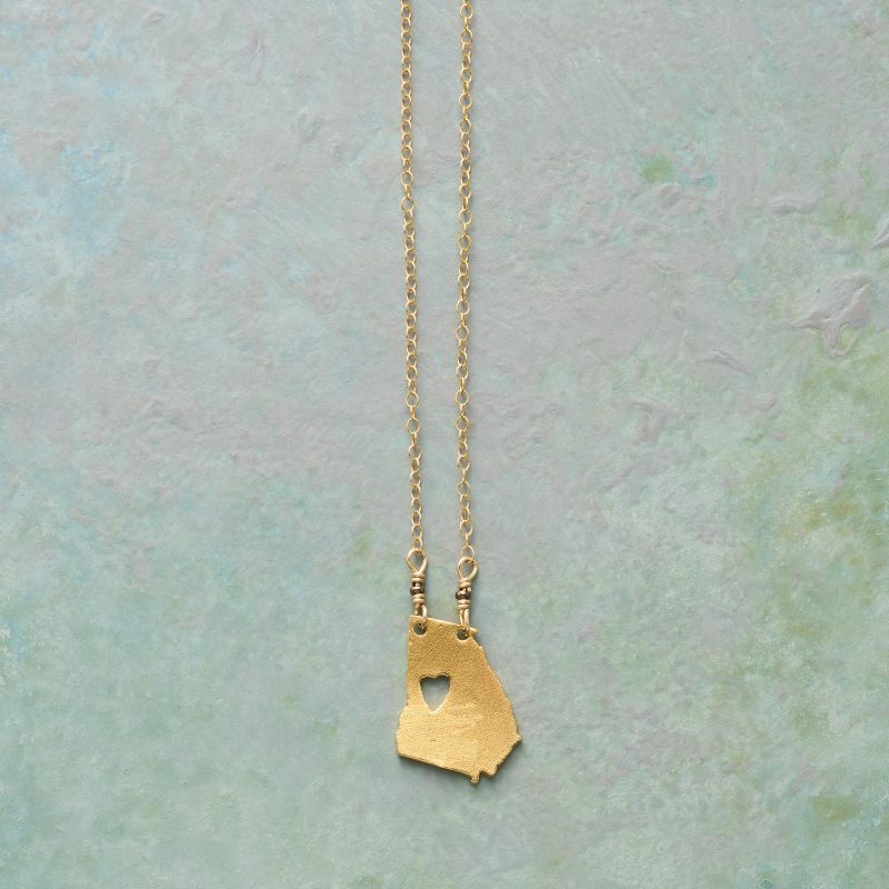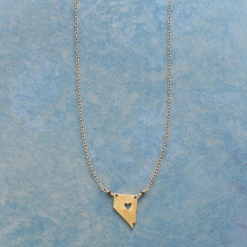 Celebrate your favorite state with our 18kt gold-plated charm strung on a 14kt gold-filled chain. A cut-out heart shows your love. Lobster clasp. Handcrafted. Exclusive. 17-18l