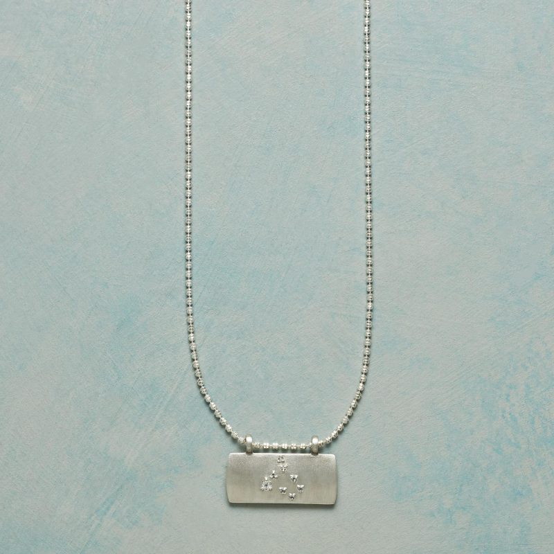 Our sleek sterling silver pendant hosts a straightforward expression of your astrological birth sign in sparking white topaz. Sterling silver ball chain and spring ring clasp. Exclusive. Approx. 18l.