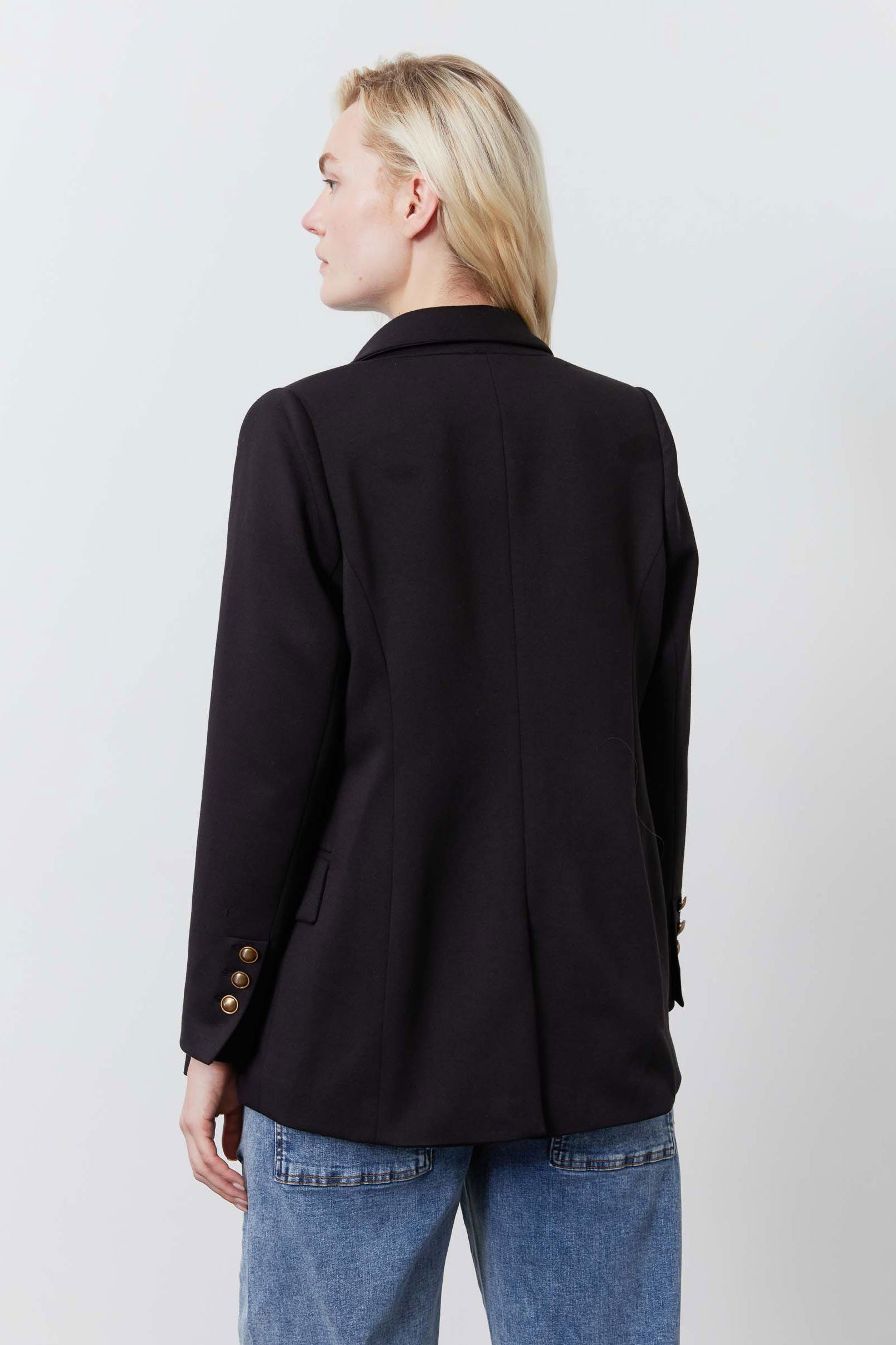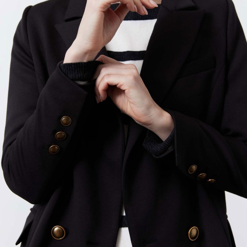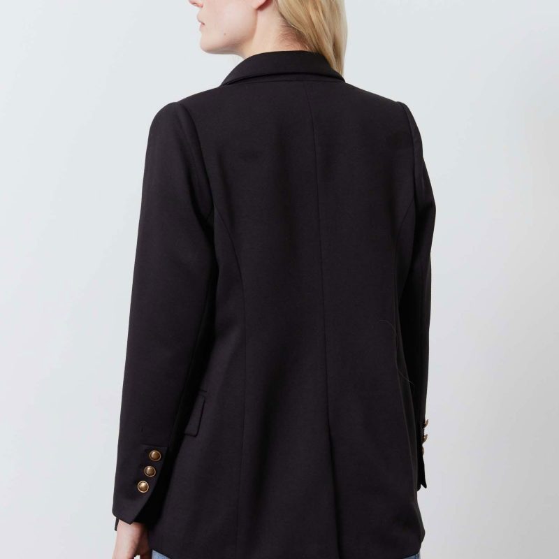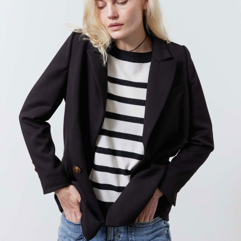 A relaxed take on classic tailoring. This double-breasted blazer is designed with a slightly elongated silhouette and soft structure. giving it an effortless. borrowed-from-the-boys feel while still looking sharp and put together.